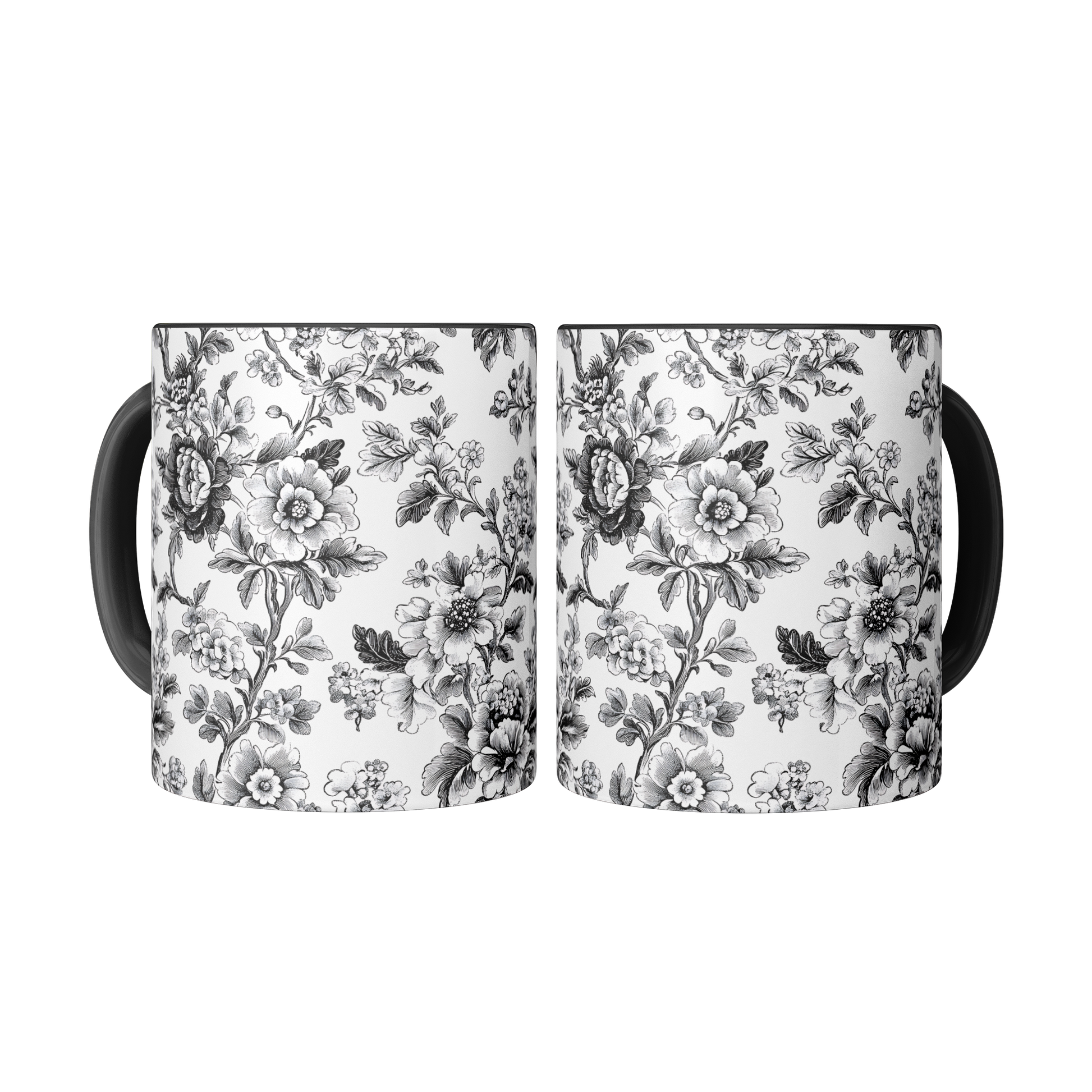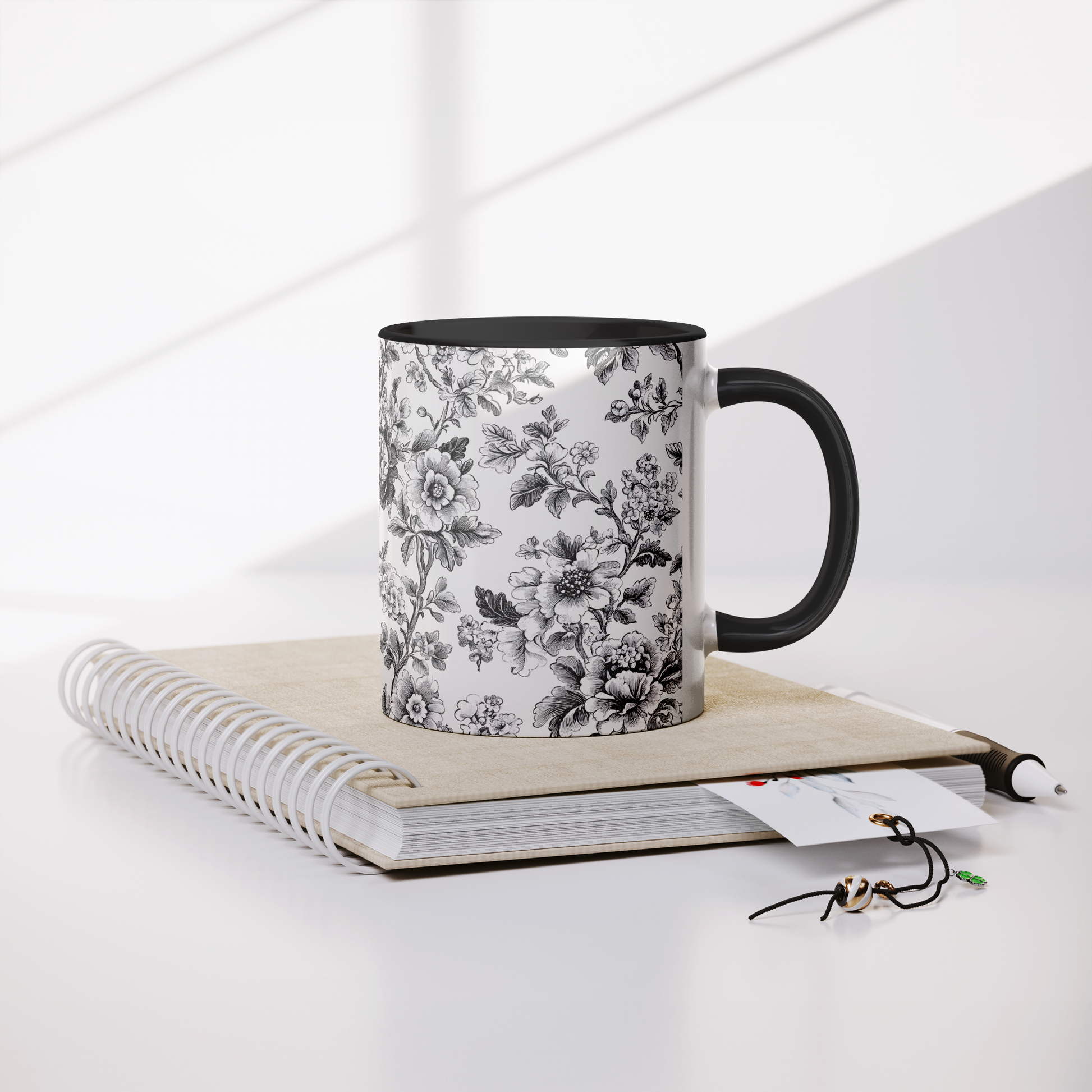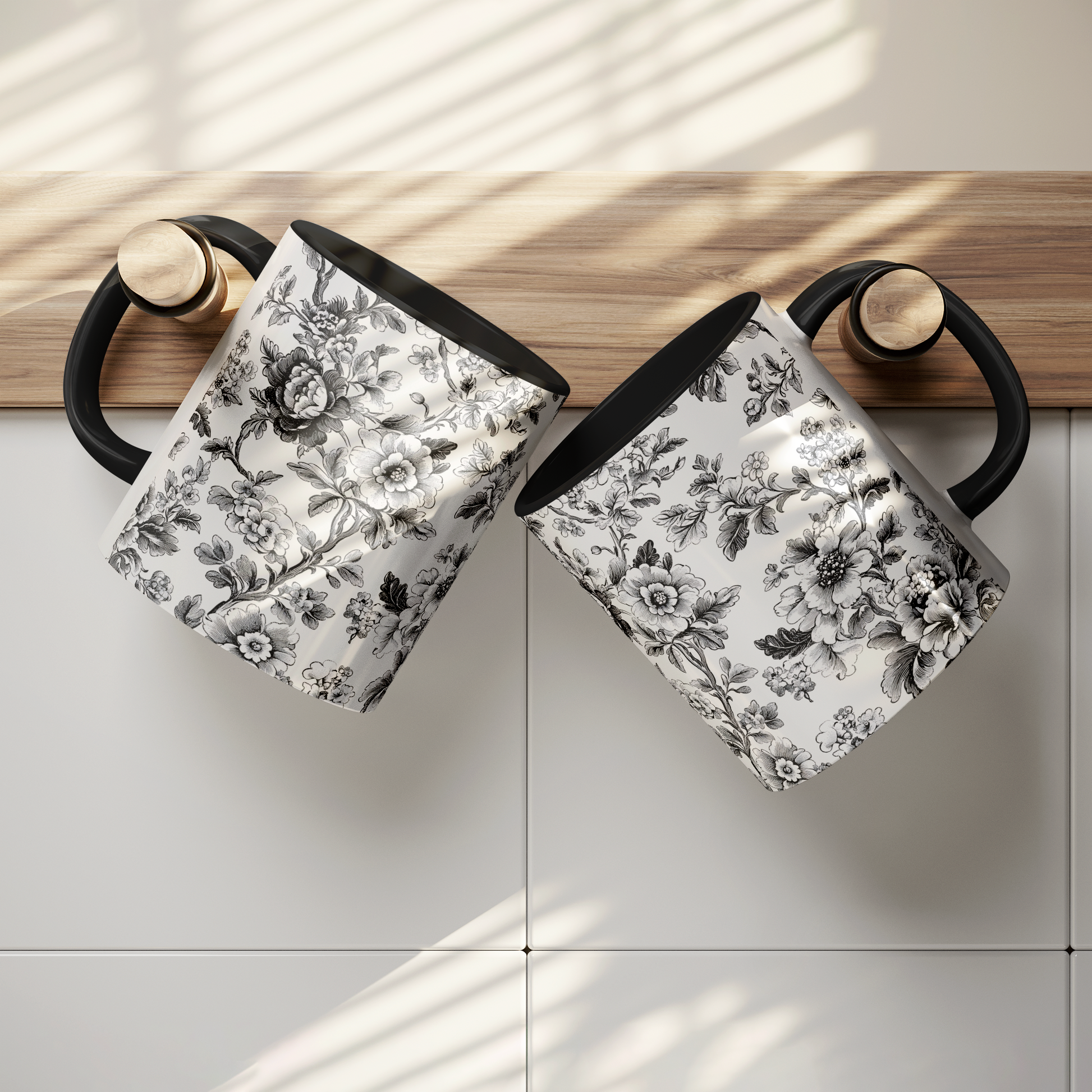 Black Toile Accent Mug – 11oz Ceramic with Elegant Floral Design