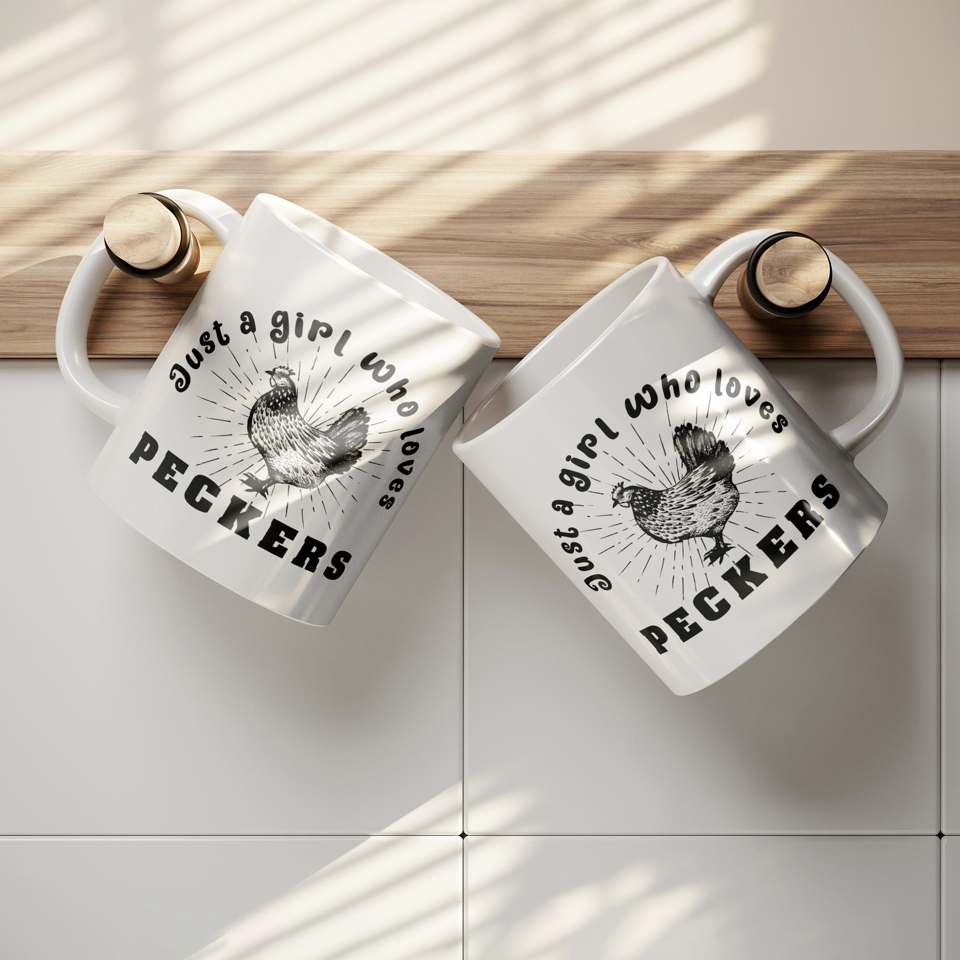 “Just a Girl Who Loves Peckers” alongside a rustic chicken illustration. Perfect for poultry enthusiasts, farm lovers, and anyone who enjoys a good laugh.