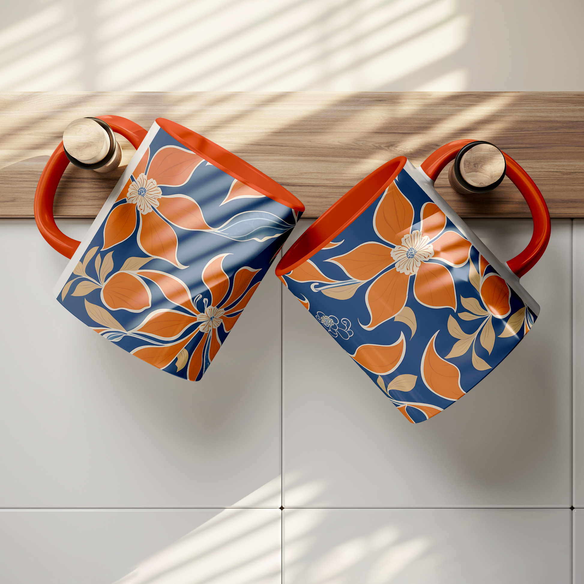 Orange Floral Accent Mug – 11oz Ceramic with Vibrant Vintage